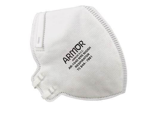 El respirador AR-1040 Fabricado con fibras de polipropileno entrelazado. Bandas elásticas textiles. Sin partes metálicas.
